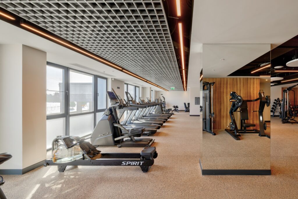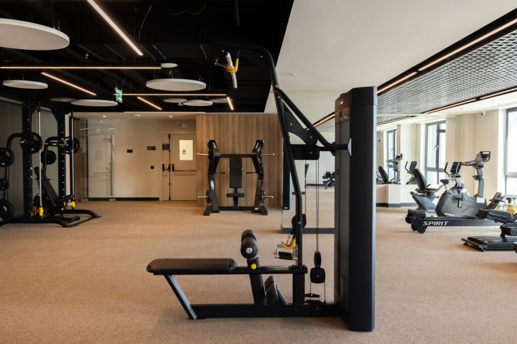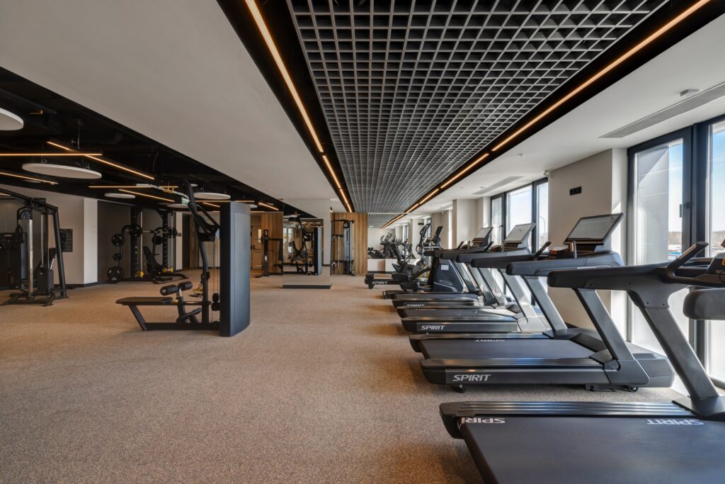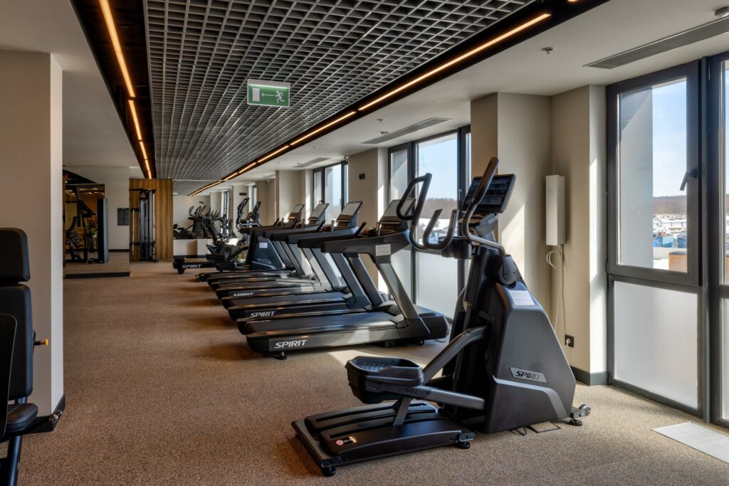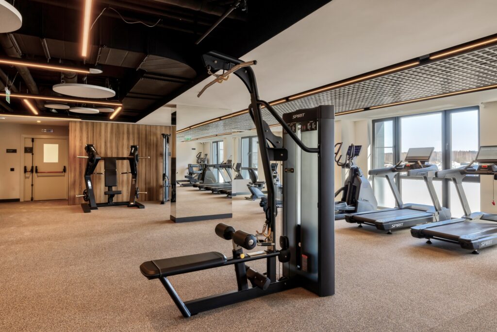 Фитнес-зал в отеле «Эрбелия» (Завидово) расположен внутри велнес-центра, работает круглосуточно и оснащен современными тренажерами. Гостям доступен широкий выбор оборудования для кардио- и силовых тренировок. Посещение включено в стоимость проживания, а также предусмотрен бассейн с панорамным видом.