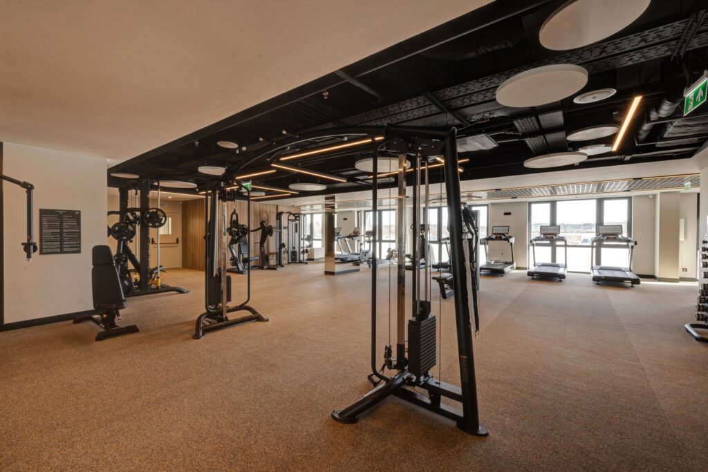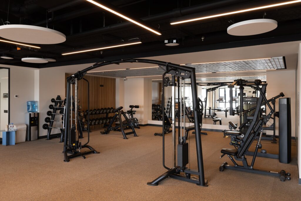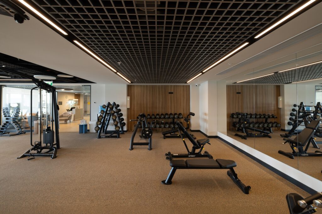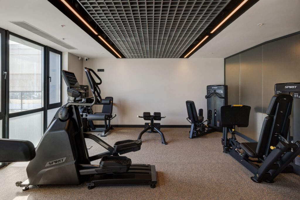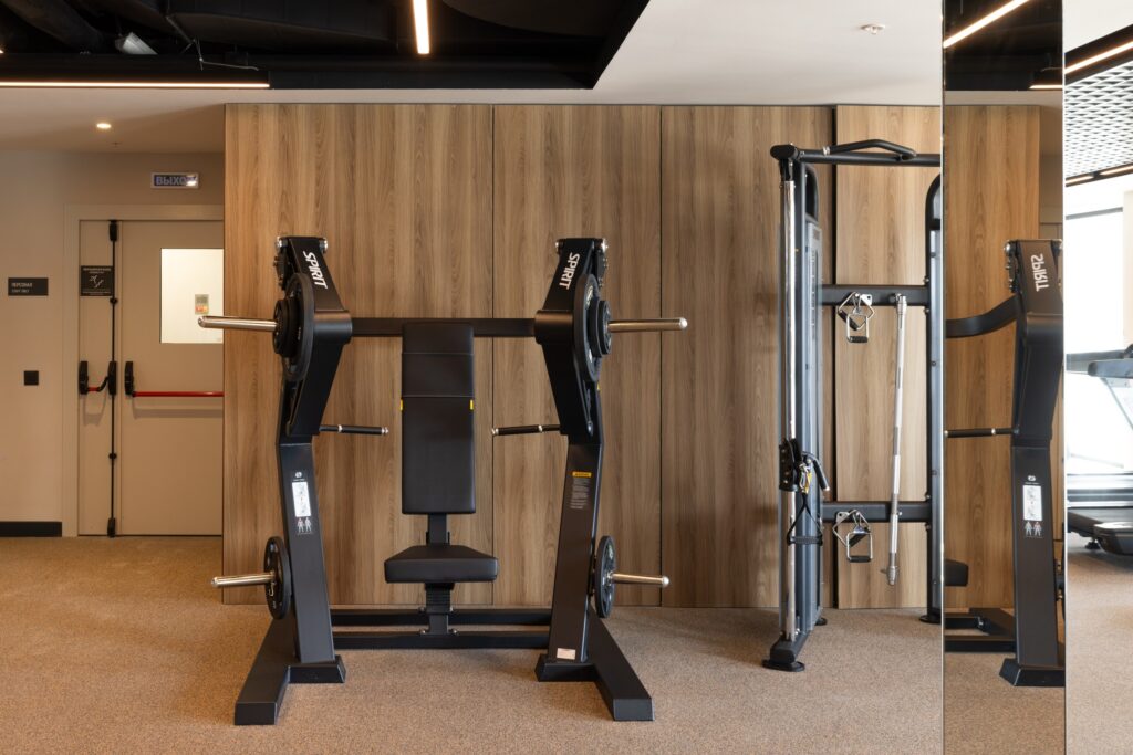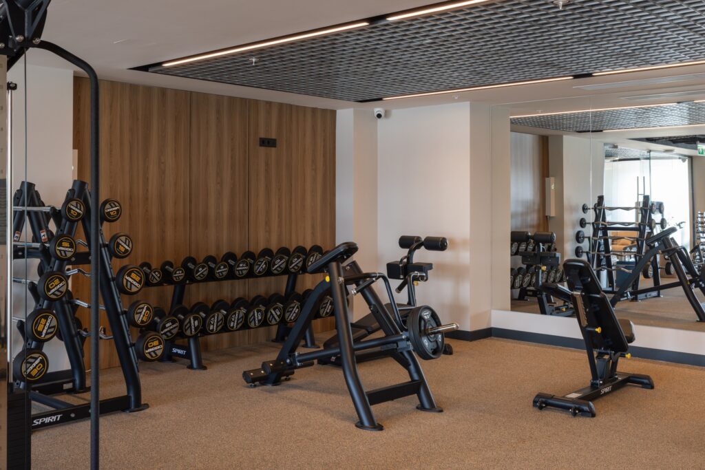 Фитнес-зал в отеле «Эрбелия» (Завидово) расположен внутри велнес-центра, работает круглосуточно и оснащен современными тренажерами. Гостям доступен широкий выбор оборудования для кардио- и силовых тренировок. Посещение включено в стоимость проживания, а также предусмотрен бассейн с панорамным видом.